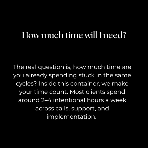 Strategy without embodiment won’t stick. You’ll integrate the mindset, energy and identity of a woman who leads with power, holds more with ease, and knows her success is inevitable.