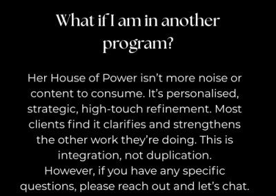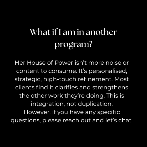 That’s exactly why I created Her House of Power, a space for women like you to lead, scale, and create on your own terms. No fluff. No rigid frameworks. Just potent strategy, embodied energetics, and the kind of support that actually moves the needle.
